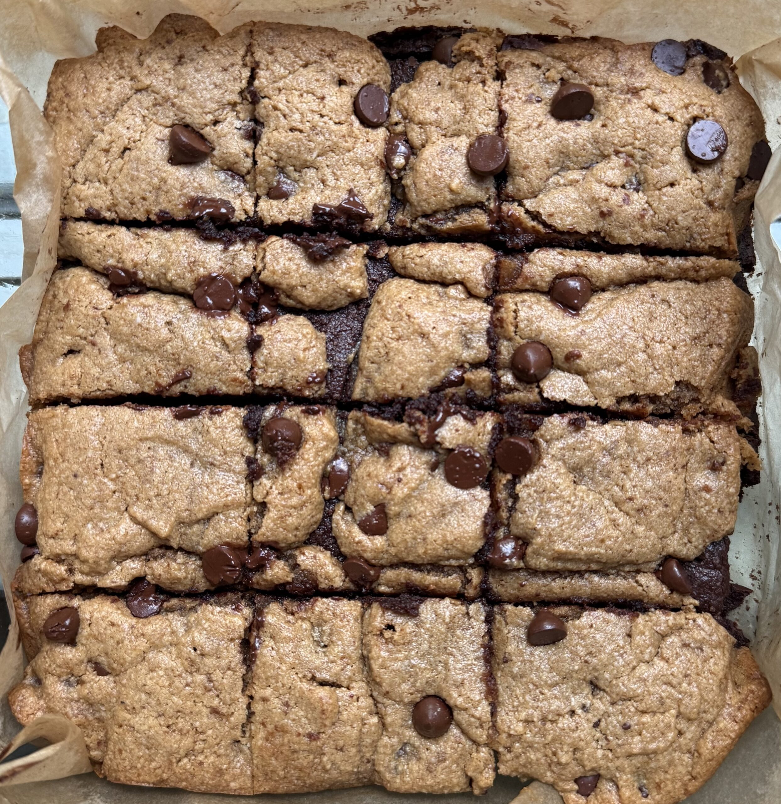 What sets these brookies apart is what’s inside (and what isn’t). We use blanched almond flour as the base – naturally gluten-free and significantly higher in fiber than traditional wheat flour. That extra fiber acts as a prebiotic, feeding the beneficial bacteria in your gut and supporting better digestion and gut health. Paired with antioxidant-packed unsweetened cocoa powder and 70–85% dark chocolate chips, every square is rich in polyphenols – powerful plant compounds shown to reduce inflammation, improve heart health, and protect cells from oxidative stress.