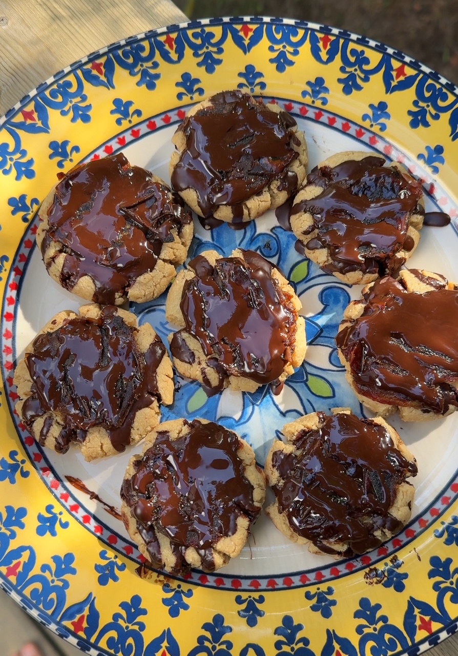 • Once you remove the cookies from the oven, let cool for 10 minutes and do not touch the cookies during this time. After the 10 minute rest, drizzle the cookies with dark chocolate and pop them in the fridge for about an hour to let the chocolate solidify