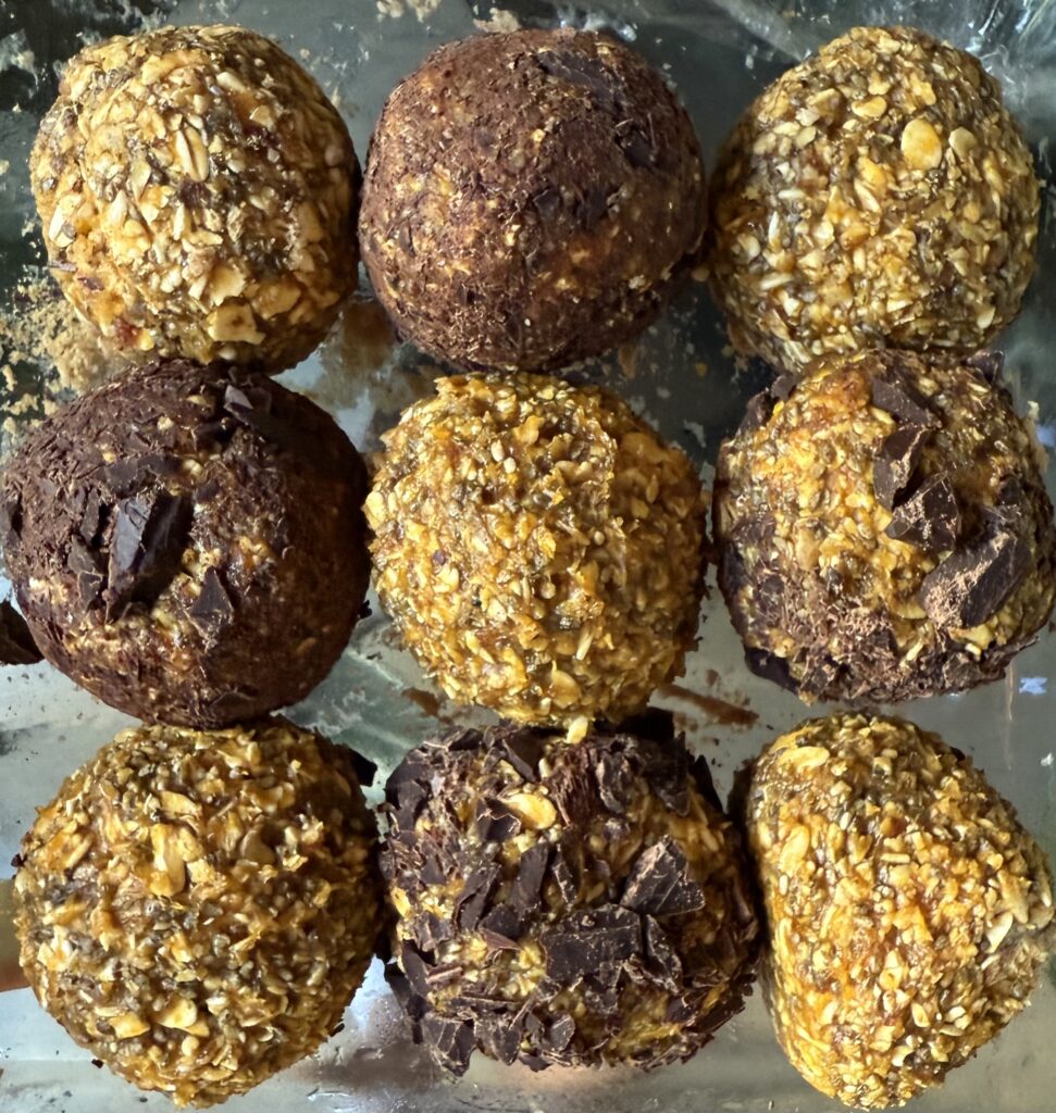 Pumpkin puree: is the star of this recipe, delivering a hefty dose of beta-carotene, a powerful antioxidant that gives these balls their vibrant orange colour. Once consumed, beta-carotene is converted into retinol (vitamin A) in the body, which plays a critical role in supporting immunity by strengthening the mucous membranes that act as barriers against pathogens. Retinol also supports hormone production, aiding in everything from reproductive health to stress response. Plus, pumpkin’s natural sweetness and creamy texture make these protein balls a satisfying treat without added sugars.